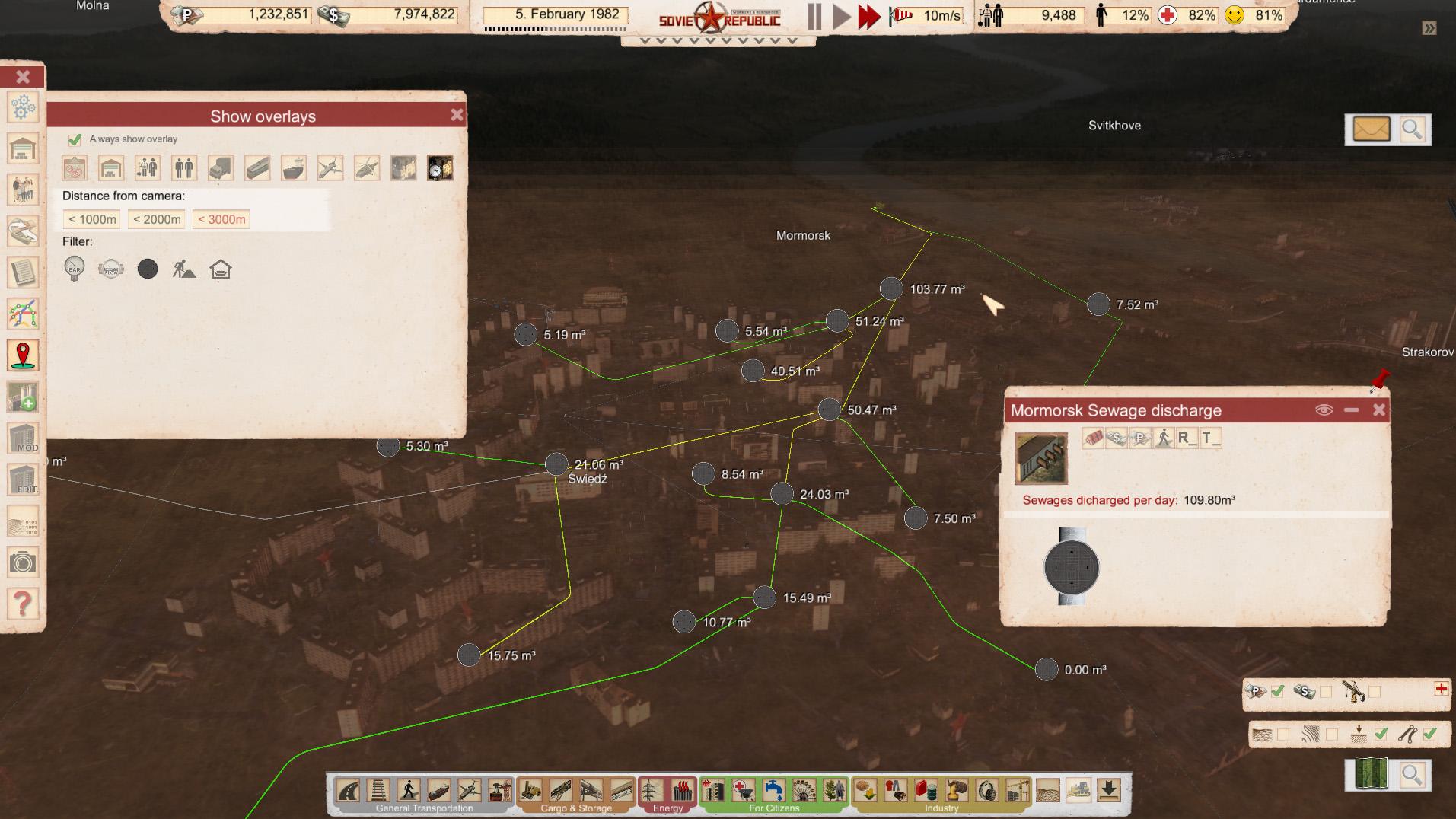 Приветствую, дорогие камрады Советской Республики. По мере того, как мы приближаемся к окончанию этого зимнего сезона, мы также всё ближе к ещё одному контентному обновлению игры. Наше внимание на протяжении прошедших недель было полностью сосредоточено на системе водоснабжения и канализации. Есть немало проблем, с которыми нам надо разобраться, и мы хотим сделать игру лучше для вас, ведь в ней есть множество вещей, на которые вам нужно обратить внимание при планировании и постройке ваших прекрасных республик.
