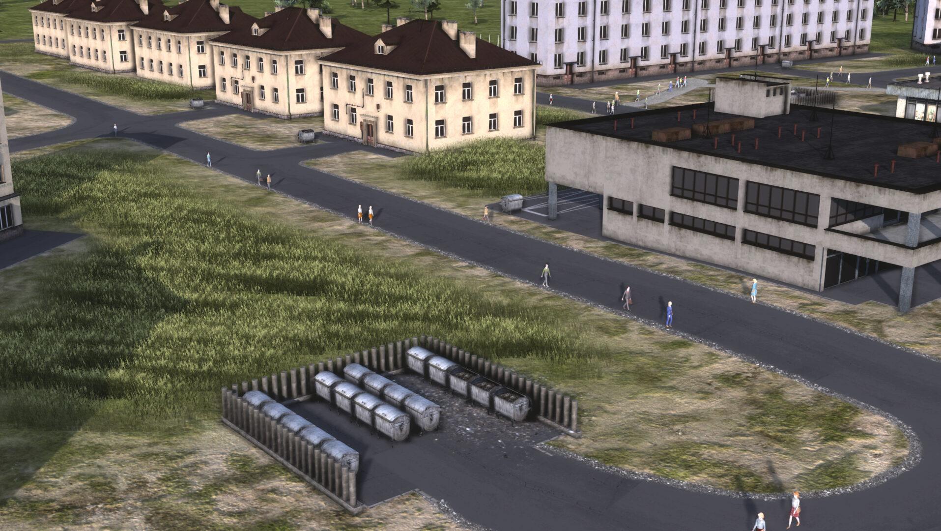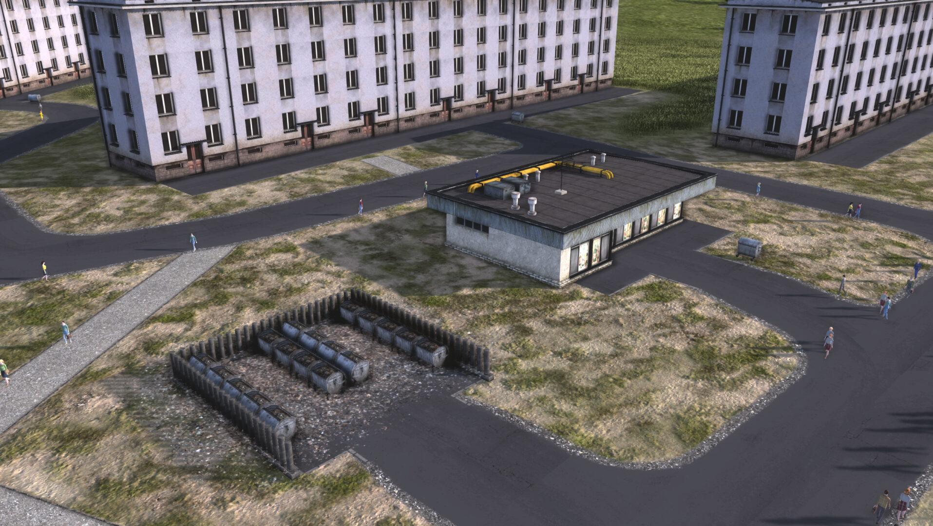 Имейте в виду, что в случае, если контейнеры переполнятся, отходы начнут валяться повсюду, что приведёт к загрязнению окружающей области. На изображениях вы можете видеть визуализацию стандартного контейнера, который есть у каждого здания. Вам не нужно будет строить отдельную площадку с контейнерами для каждого здания, поскольку у них будут собственные контейнеры, но в большинстве случаев будет полезным пожертвовать немного места и всё-таки построить площадку.