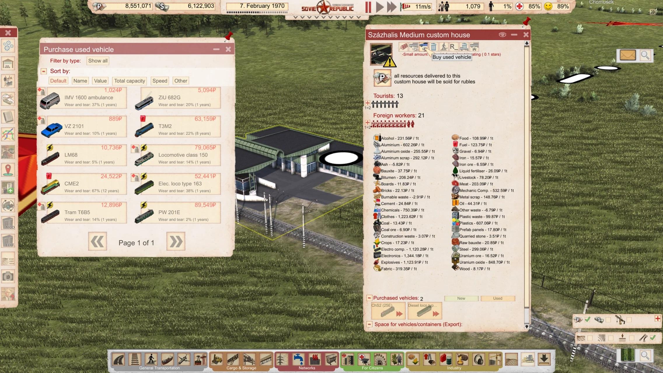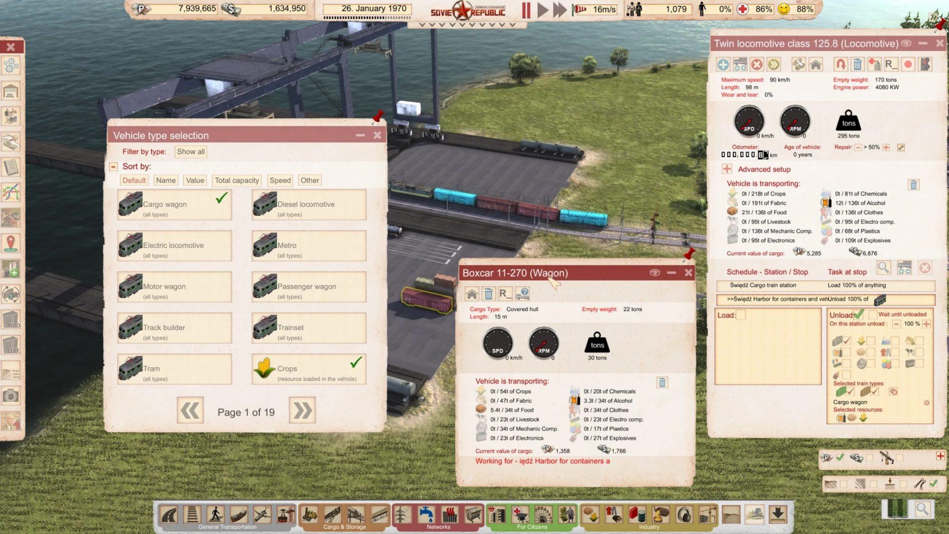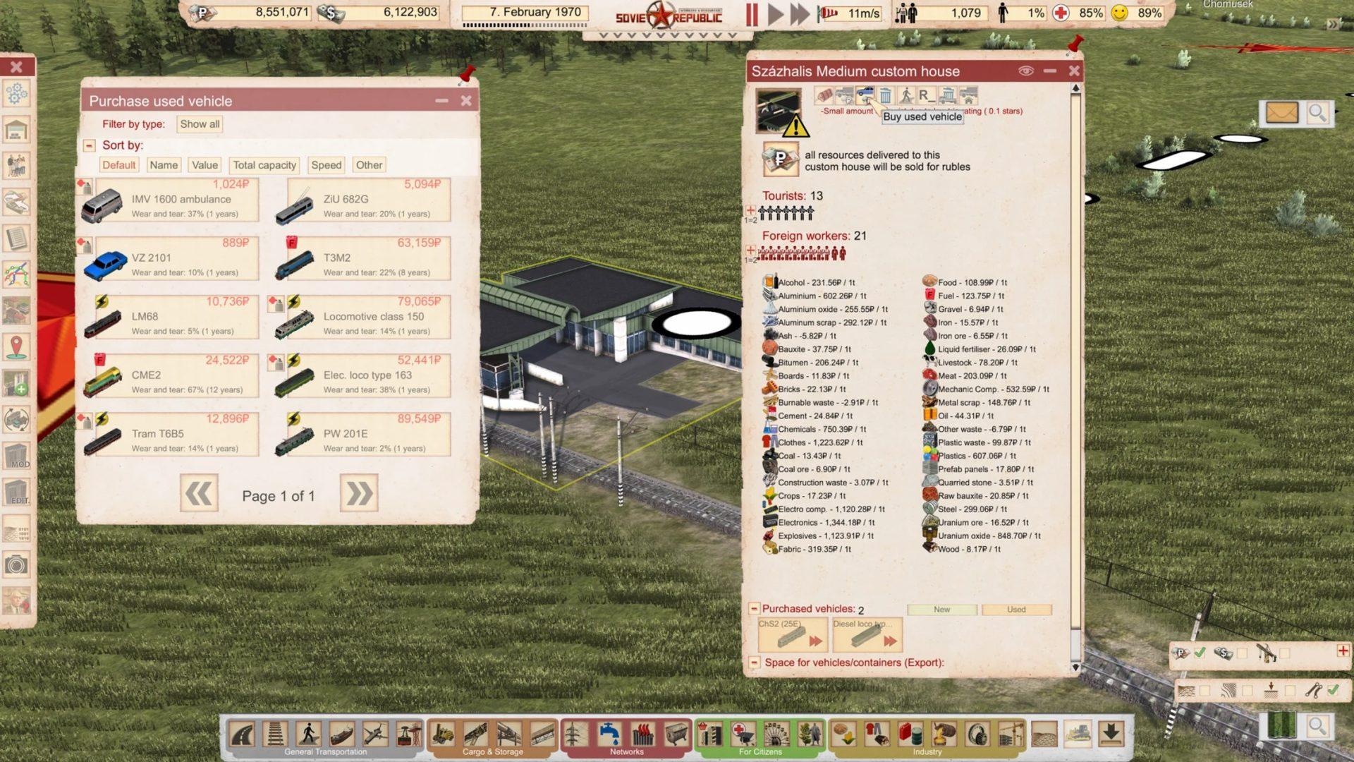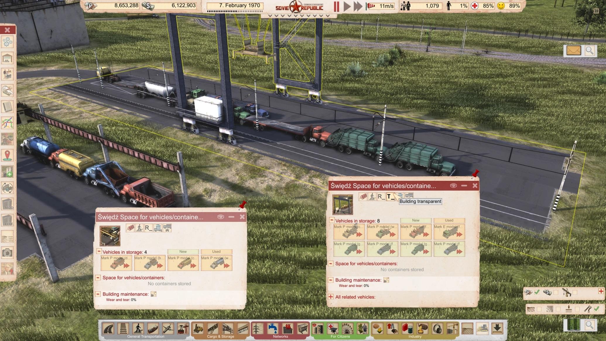 Вы также можете хранить этот поддержанный транспорт. Да, вы правы, товарищи. У нас есть склады для контейнеров и транспорта. Вы можете даже загрузить транспортные средства на поезда или корабли. Это означает, что можно перемещать транспортные средства между островами или просто привезти их из другого места.