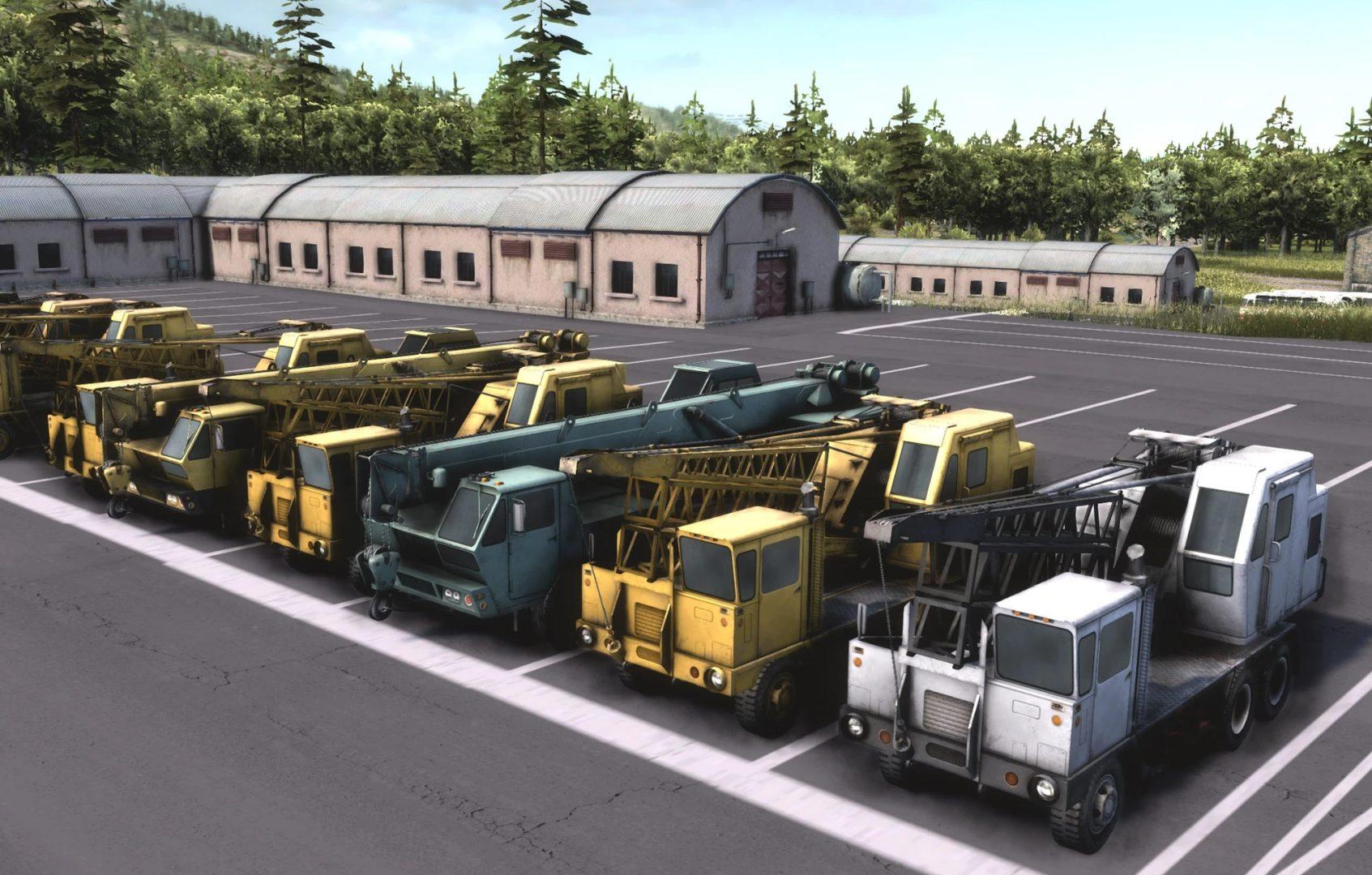 Однако суть этого отчета заключается в скромных дополнениях и изменениях, которые мы недавно внесли. Наш автопарк пополнился двумя западными автокранами и здоровенным самосвалом. Взгляните на этих механических зверей на прилагаемых скриншотах.